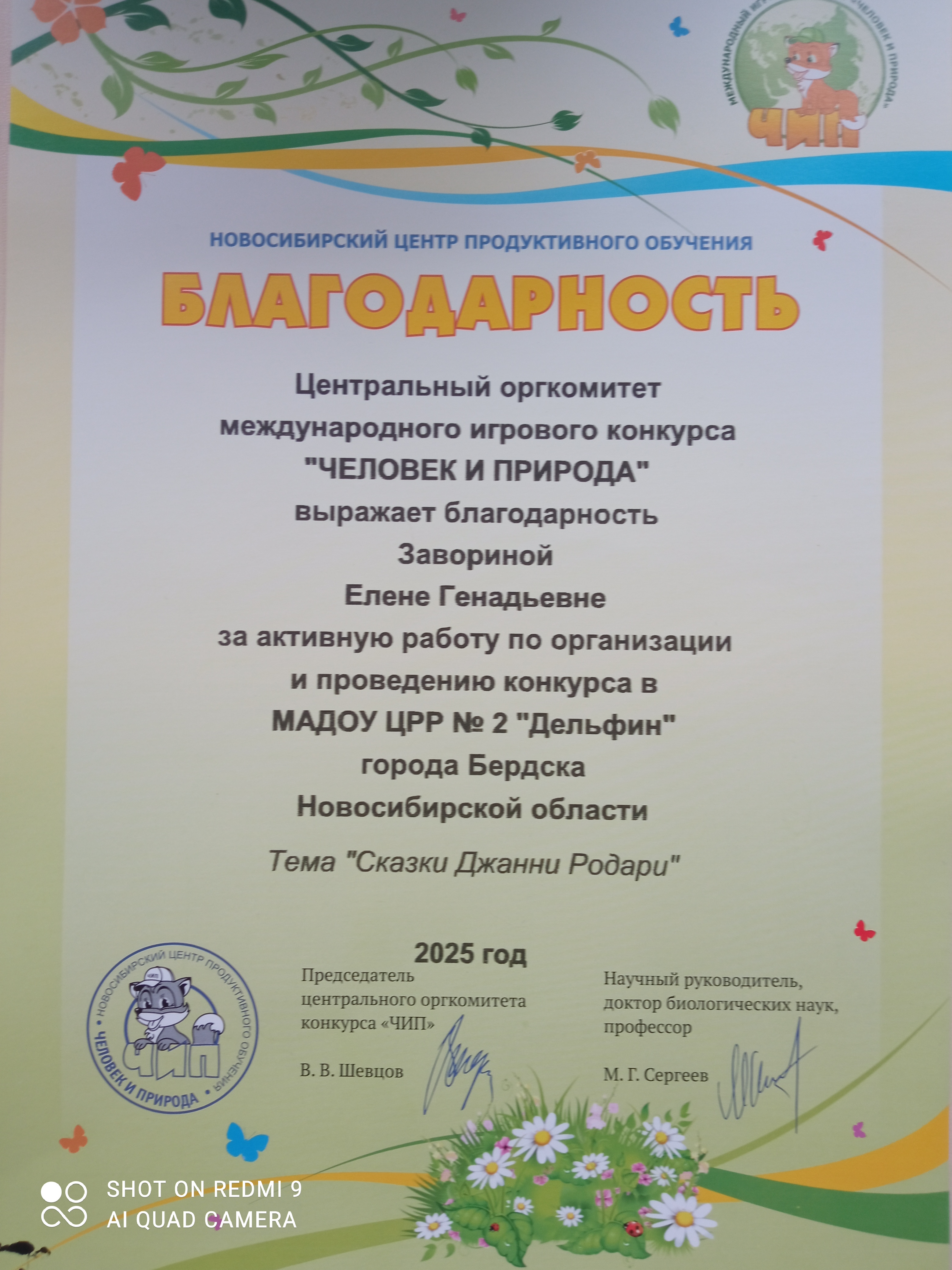 Благодарность Центральный оргкомитет международного игрового конкурса "ЧЕЛОВЕК И ПРИРОДА". 2025 год